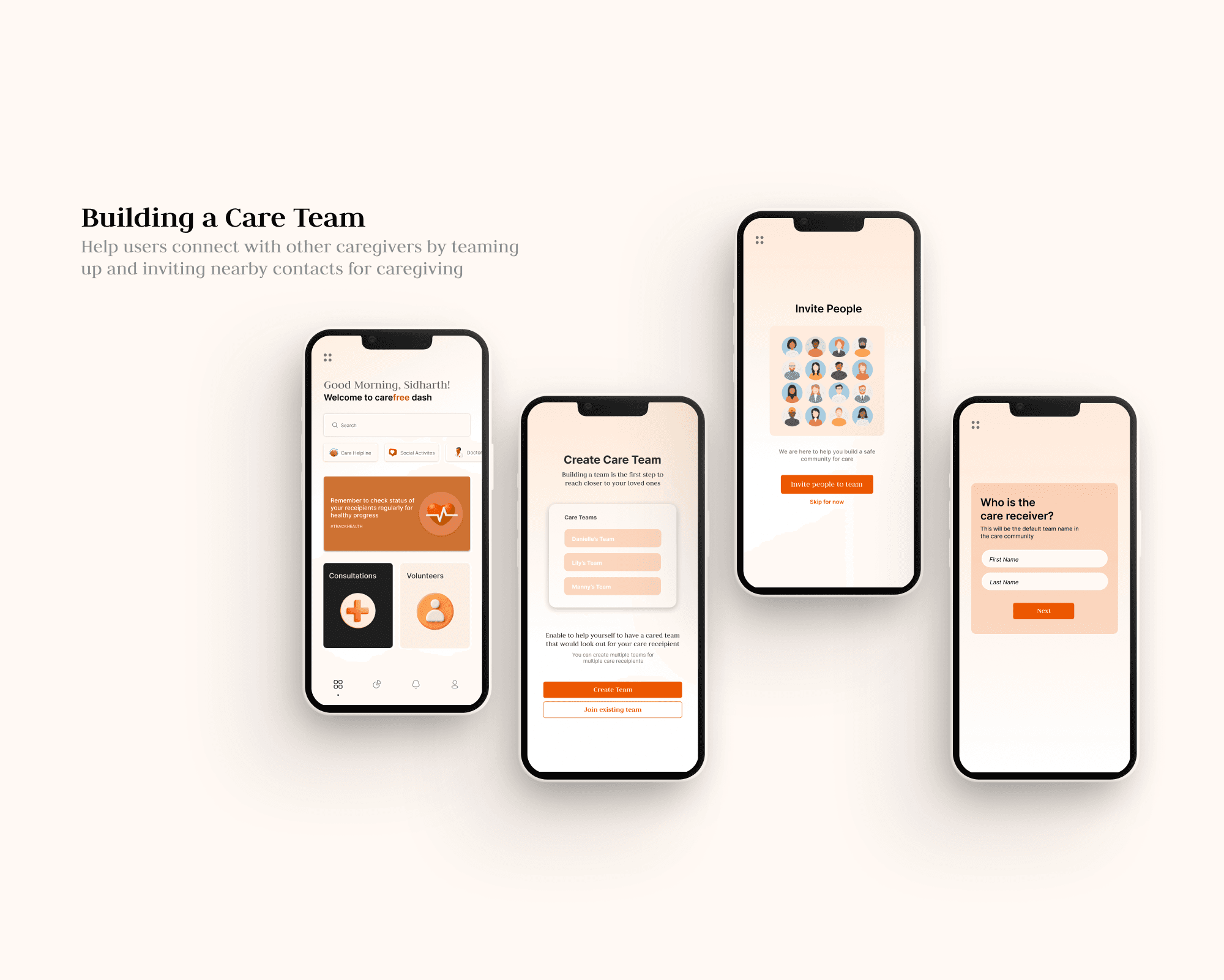 Carefree is an unique platform for caregivers & care receivers that gives users an efficient and engaging method to keep track of and manage distant connections. The service facilitates rapid reach-out activities and relationship management.